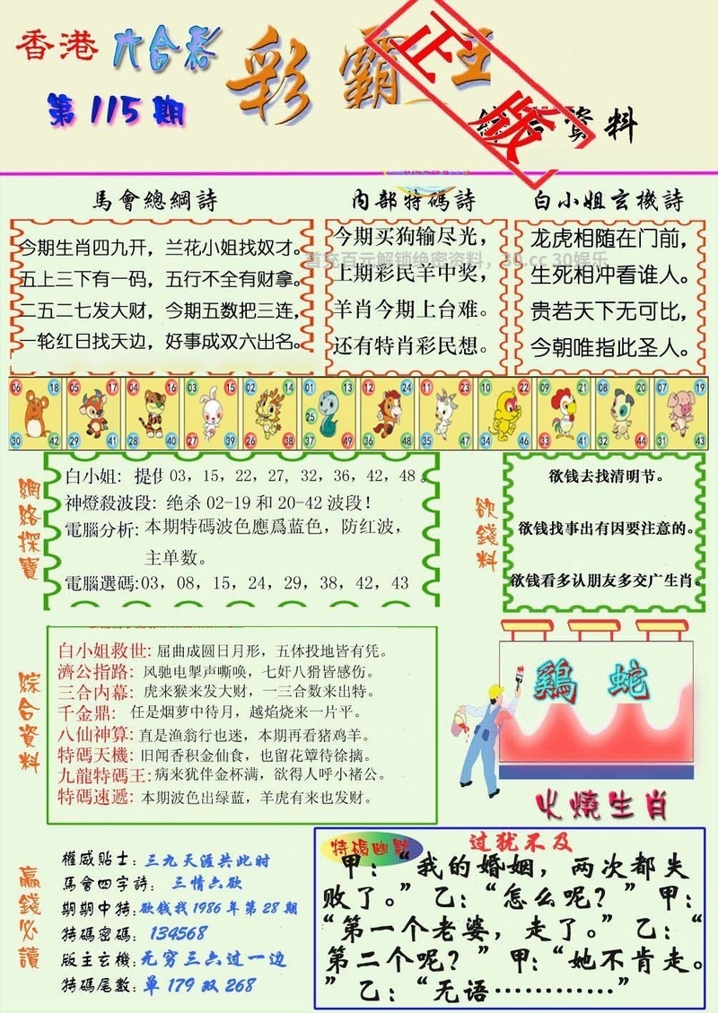 | 114期:☀平特三肖☀♠【马+鸡+兔】♠ |