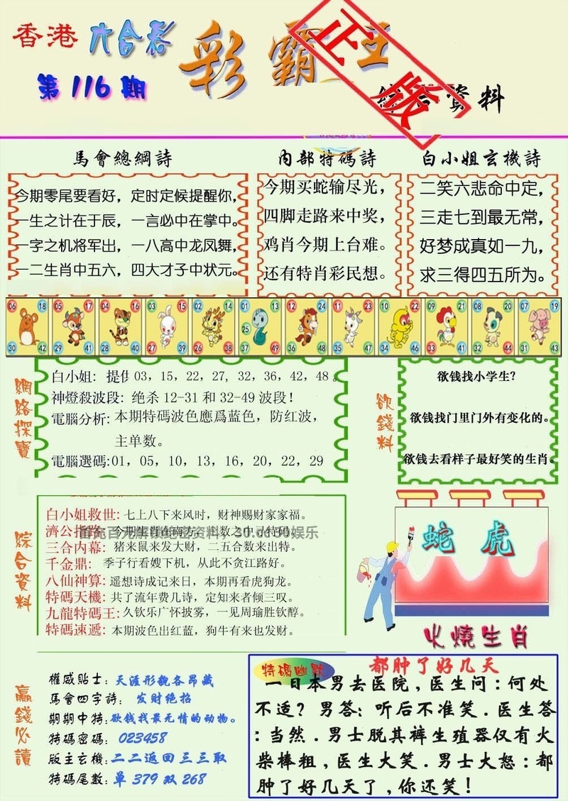 | 116期:☀平特三肖☀♠【马+鸡+羊】♠ |