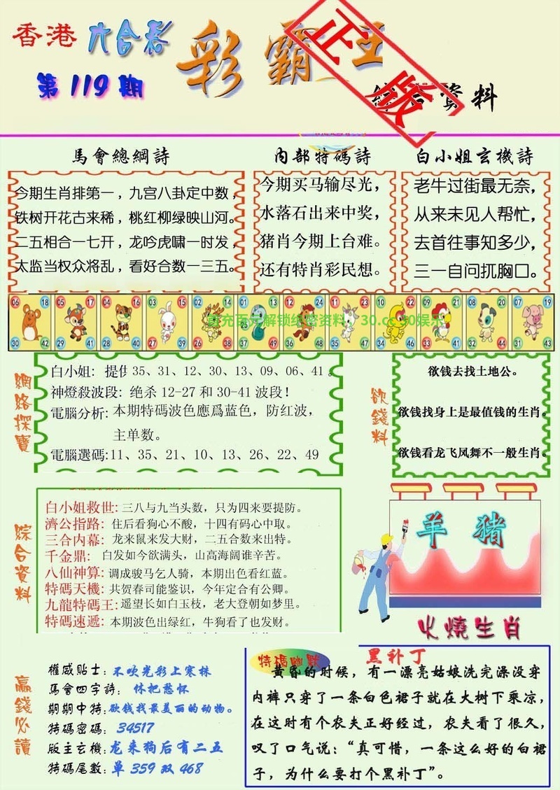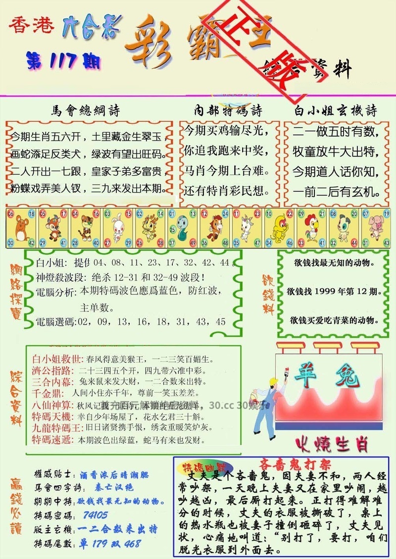 | 104期:☀平特三肖☀♠【羊+鼠+猴】♠ |