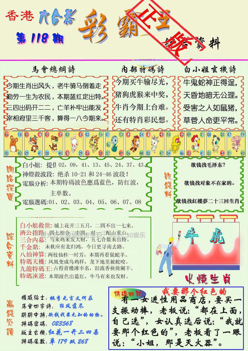 | 113期:☀平特三肖☀♠【牛+龙+虎】♠ |